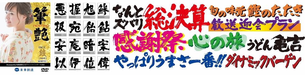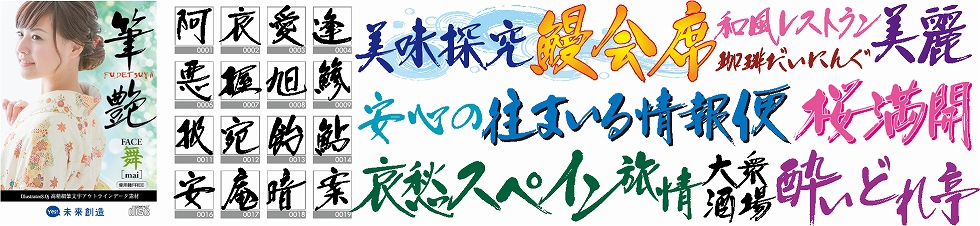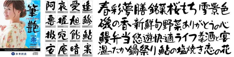多くの制作物・デザイン・ロゴなどに使用権フリーの筆文字、アウトラインデータでお届けします。