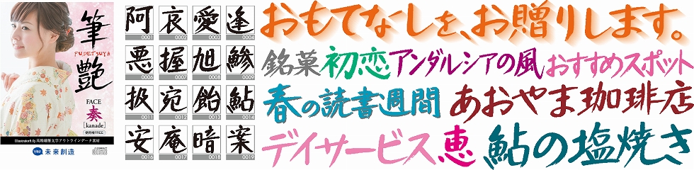 書家が書き下ろした個性的な筆文字や、デザイナーが創り上げたイラスト文字を、